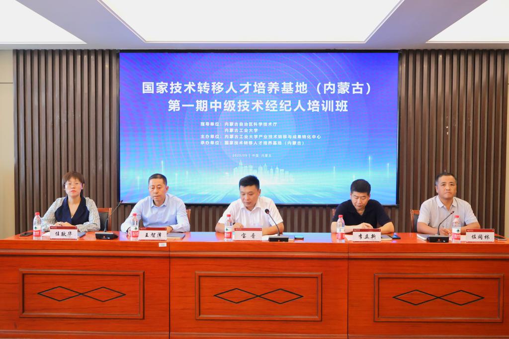9月12日上午,由自治区科学技术厅指导,金宝搏188体育 主办,国家技术转移人才培养基地(内蒙古)承办的第一期中级技术经纪人培训班在我校开班。校党委委员、常务副校长宝音自治区科技成果转化中心四级调研员李立新内蒙古沃付集团董事长王智泽我校产业技术转移与成果转化中心负责人出席开班仪式