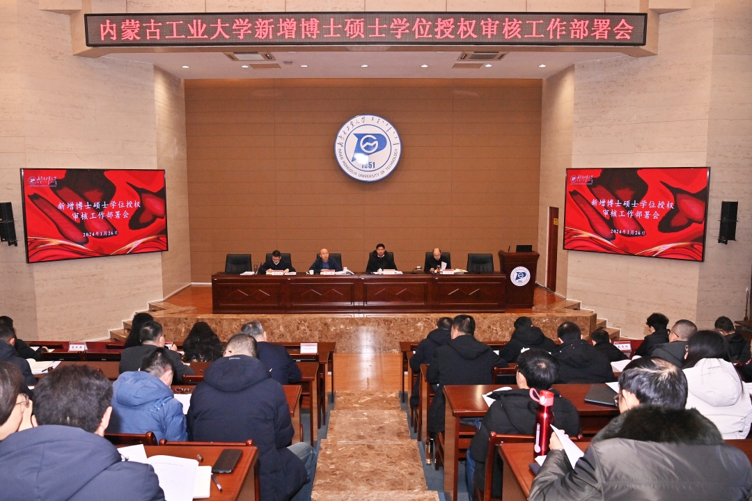 1月26日,我校新增博士硕士学位授权审核工作部署会在新城校区明德楼第二报告厅召开。党委副书记、校长郭喜出席并讲话,校党委副书记赵增武,校党委委员、副校长刘利强出席会议校党委委员、副校长郝贠洪主持会议各相关职能部门、学院主要负责人,校内评阅专家及相关工作人员参加会议。
