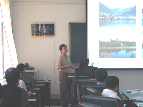 王生铁作了题为《Wind power in Norway》的报告。王生铁主要从Brief introduction about Norway、Status of Wind power development in Norway、Wind power research and development in Norway、Wind farms and demonstration projects in Norway、Prospective of wind power development in Norway、NTNU-Norwegian University of Science and Technology六个方面介绍了自己在挪威作访问学者期间的学习经历。