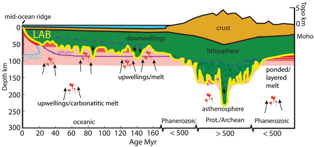 岩石圈地幔和下伏软流圈地幔的相互作用(改自Rychert et al. (2020) JGR-Solid Earth