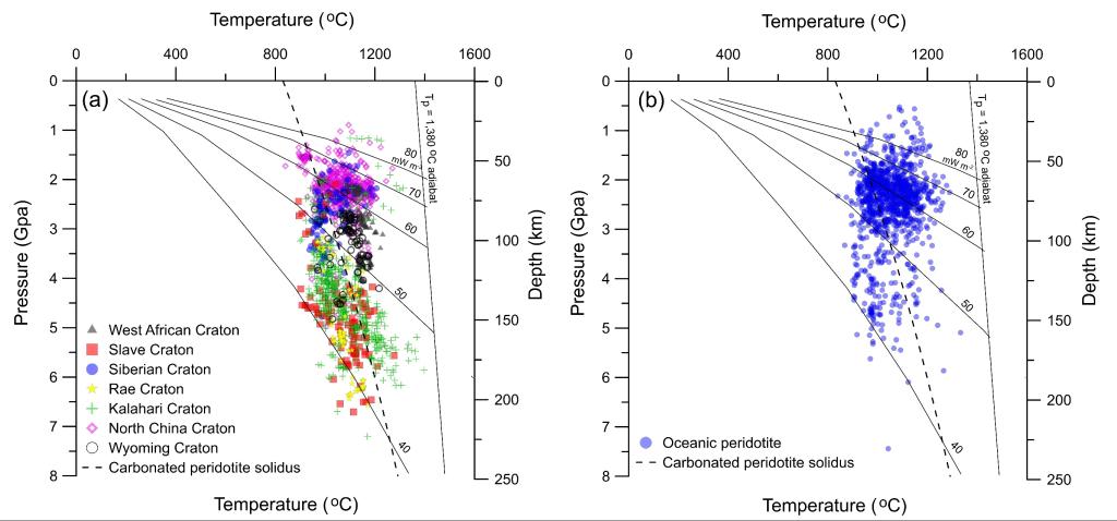 岩石圈地幔的压强和温度条件对研究地球内部的动力学性质至关重要,包括岩浆的生成和克拉通的稳定性。地幔捕虏体是岩石圈地幔的直接样品,前人将高温高压实验开发的矿物温压计应用于地幔捕虏体,从而研究这些样品代表的岩石圈内部的温压条件。矿物温压计的原理是建立矿物元素成分和温压的关系。经典温压计一般只采用一个或者多个简单方程来关联矿物化学数据与矿物结晶压强和温度的变化。然而,这些公式通常伴随着较大的标准误差估计,且只适用于特定的元素含量范围,难以广泛并准确地应用到全球范围的地幔捕虏体上。