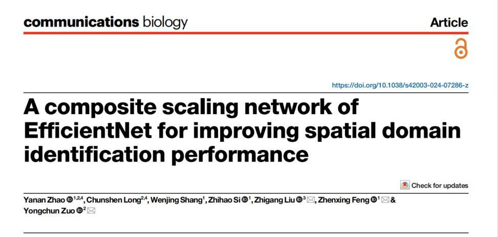 近日,我校冯振兴副教授研究团队在Springer Nature旗下子刊《Communications Biology》(中科院一区top )上发表了题为“A composite scaling network of EfficientNet for improving spatial domain identification performance”的研究论文。金宝搏188体育